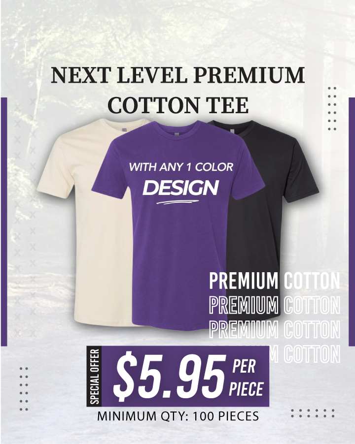 Next Level 3600 Premium Cotton T-Shirt Package (100 Pieces)